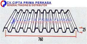 CD 10 – 760 ukuran panjangnya dapat dipesan sesuai dengan kebutuhan di proyek, sehingga mempercepat pelaksanaan pemasangannya. Tersedia dengan ketebalan mulai dari 0.25mm, 0.30mm, 0.35mm, 0.40mm, 0.45mm dan 0.50mm. Bahan baku bisa menggunakan Zincalume, Abadi ataupun Galvalume